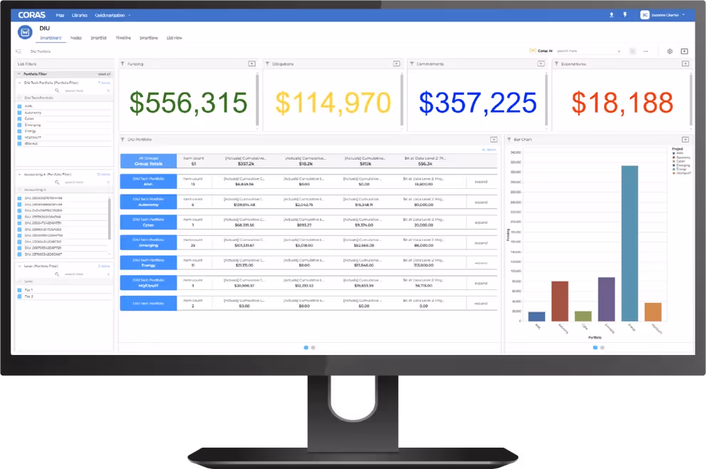 As the Defense Innovation Unit (DIU) scales its budget from $100 million to $1 billion, we are working closely with them to develop a tailored budget management solution within CORAS. By creating real-time financial visibility, AI-driven analytics, and automated workflows, DIU can strategically allocate resources, track spending, and align investments with mission objectives.