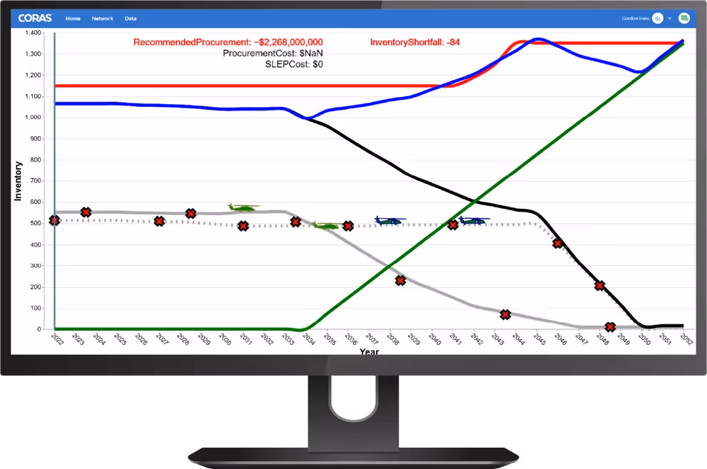 With PMA-299 we have developed a predictive analytics and scenario planning solution within CORAS, designed to improve aircraft readiness, fleet sustainment, and long-term lifecycle decisions. By integrating data from sources such as AMSRR, RAMP, and maintenance action forms, advanced models forecast mission-capable (MC) and fully mission-capable (FMC) rates, helping leadership make data-driven decisions on maintenance priorities, fleet sustainment strategies, and potential Service Life Extension Programs (SLEPs).