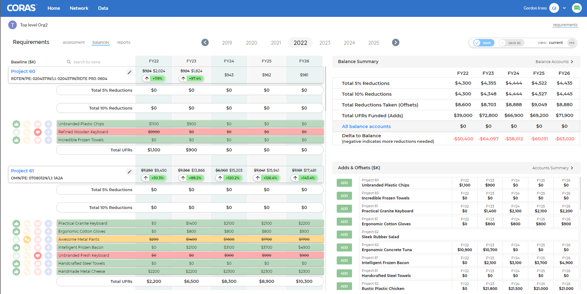 The CORAS platform was configured to support the budgeting "Adds & Offsets" process for agencies that need a complete data repository for one-stop shopping for all POM data (past and present) in a single location. Avoid the confusion of disparate data and gain a comprehensive history of individual unfunded requirements.